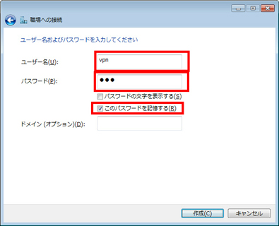 - ユーザー名およびパスワードすべて「vpn」 (3 文字)